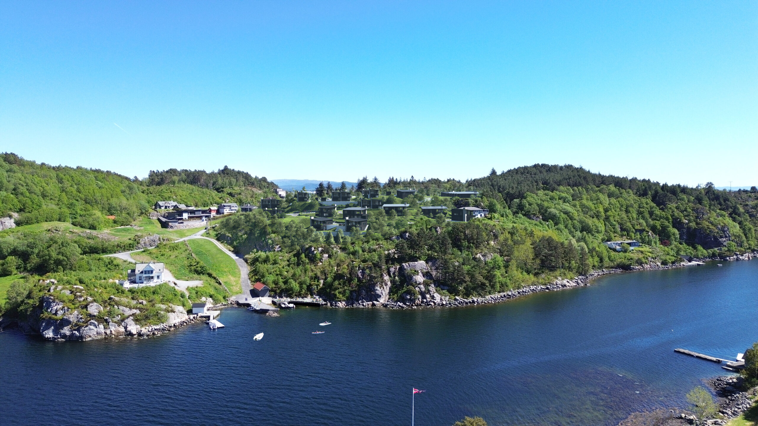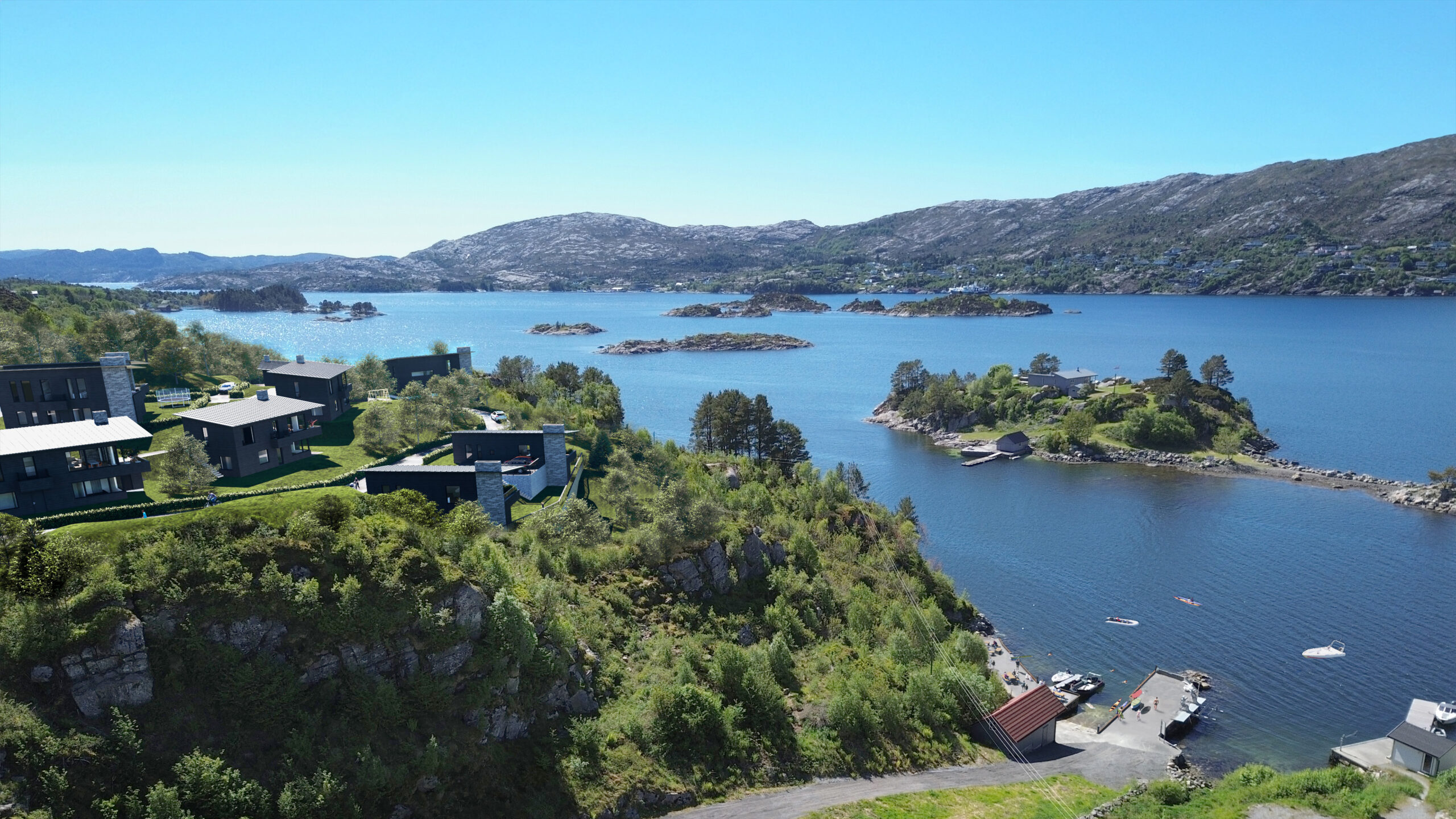 På vakre Bjorøy, ca. 20 minutter fra Bergen sentrum utvikles et nytt og gjennomført boligområde med moderne eneboliger og tomannsboliger – og boliger på ett plan med livsløpsstandard.